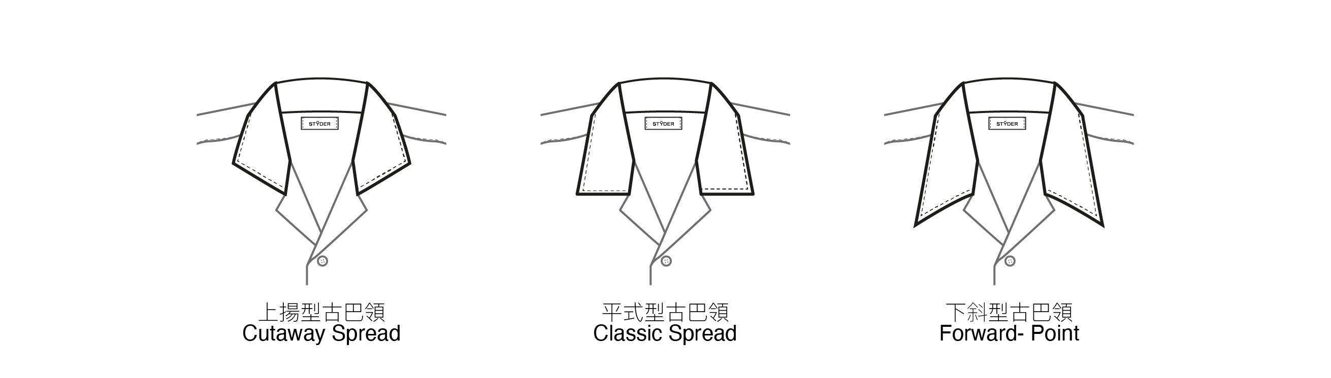 古巴領領型共三種,可依個人喜好挑選微訂製設計